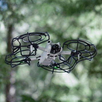 The lightweight DJI Mini 2 360° Propeller Guard fully protects the propellers and improves flight safety. It is especially useful for beginners and when flying indoors or in places with many obstacles. With the propeller guard mounted, the maximum flight time is 18 minutes.