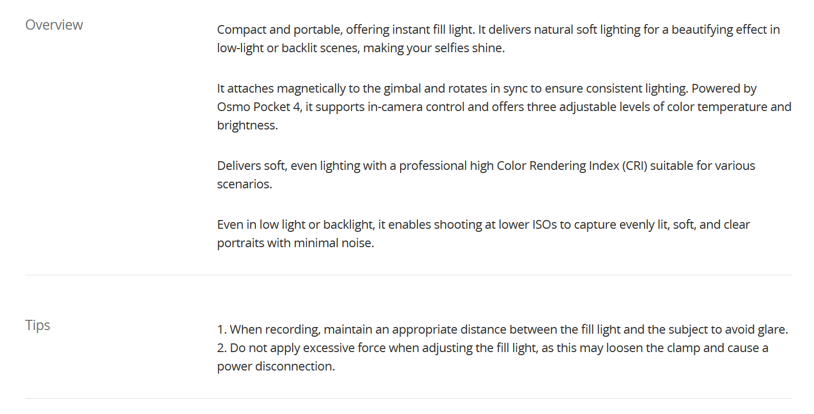 Osmo Pocket 4 Fill Light