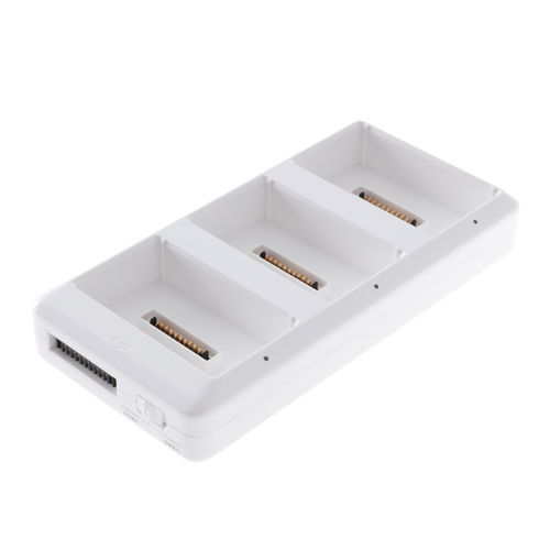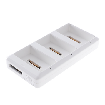 The Phantom 4 Battery Charging Hub is designed for use with the Phantom 4 Intelligent Flight Battery. When used with the Phantom 4 Battery Charger, it can charge up to three Intelligent Flight Batteries. The Intelligent Flight Batteries will be charged in sequence according to their power levels, from high to low. Storage Mode allows the Charging Hub to keep the Phantom 4 Intelligent Flight Battery at a 50% charge, which is ideal for storage.