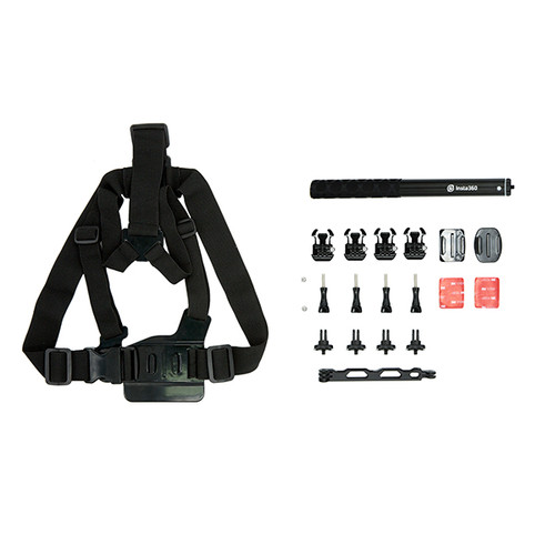 • Includes invisible selfie stick, helmet flat adhesive mount ( including extension pole) and chest strap